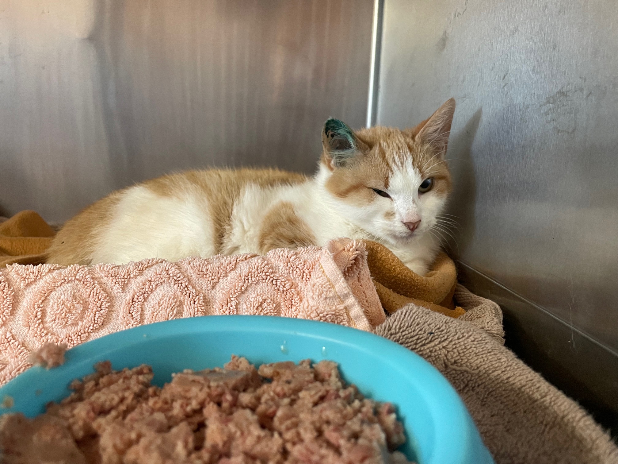 Er kam von einen Bauernhof zusammen mit 6 weiteren Katzen. Sie sind aber nicht wild, so das wir denken, das sie alle eine Chance auf ein schönes zuhause haben. Man sollte nur ein wenig Geduld mit Ihnen haben. Bei Fragen stehen wir ihnen gerne zur Verfügung.