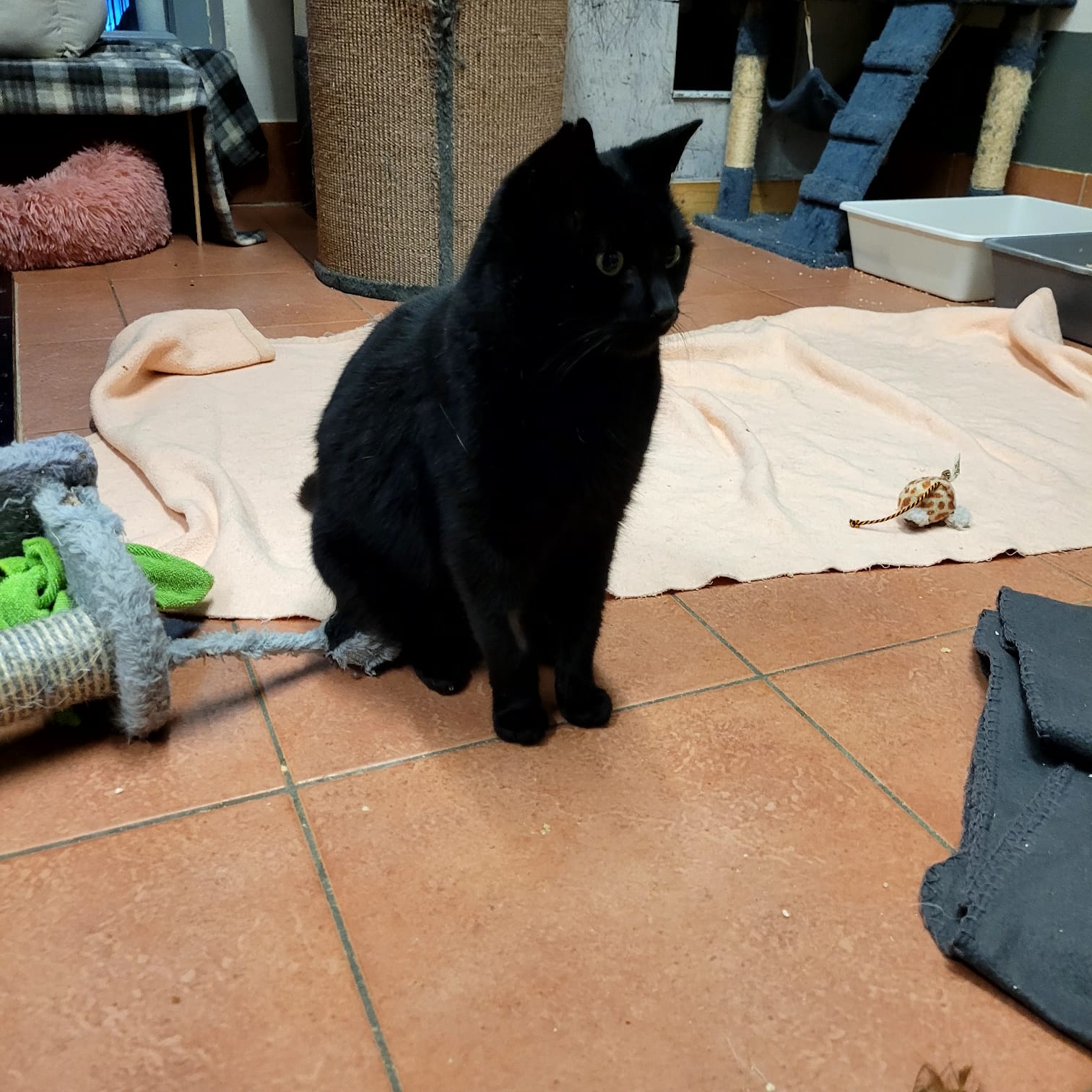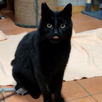 Pepper ist ein schöner schwarzer Kater. Er verträgt sich hier bei uns relativ gut mit den anderen Katzen. Zu uns Pflegern kommt er und lässt sich auch streicheln, aber das dauert immer ein wenig. _Er wartet eher erstmal ab, bevor er auf jemanden zu kommt.